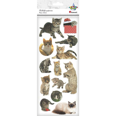 Naklejki papierowe, wzór: koty. 13 sztuk.