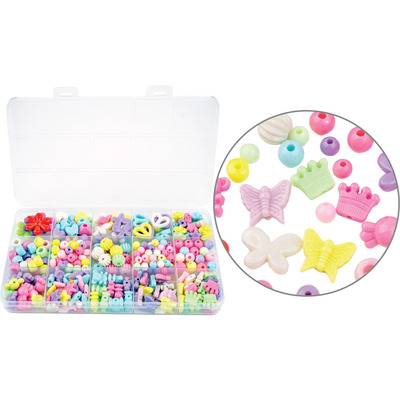 Zestaw koralików plastikowych w pudełku mix 15 kształtów i kolorów ok. 330szt PJ-7810 ALIGA