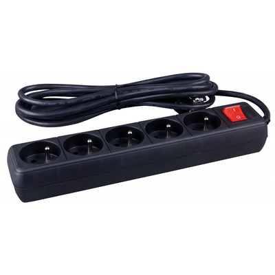 Przedłużacz OFFICE PRODUCTS, 5 gniazd, 5m, z uziemieniem i wyłącznikiem, czarny