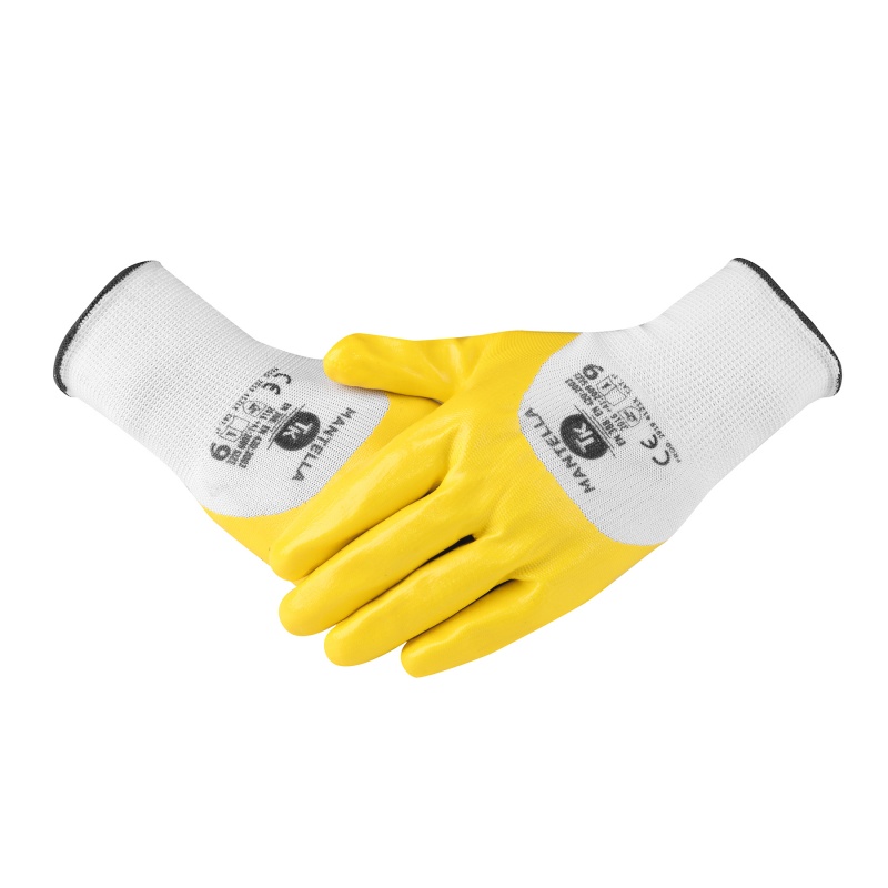 MANTELLA ? dziana rękawica ochronna pokryta dość grubym żółtym nitrylem. Przeznaczona do prac mechanicznych w zaolejonym środowisku.