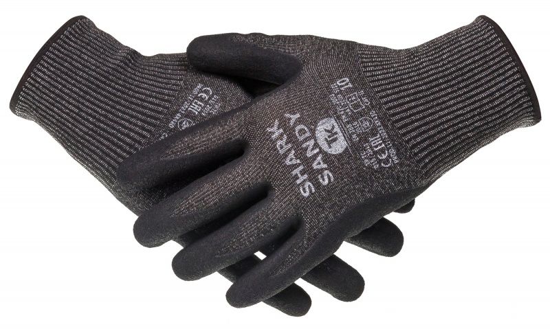 SHARK SANDY - rękawica antyprzecięciowa przeznaczona do prac wymagających zwiększonej chwytności, szczególnie w środowisku zaolejonym. Wysoki poziom ochrony przed przecięciem ? D