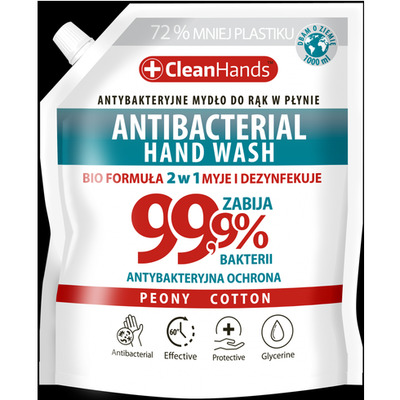 Mydło antybakteryjne CLEAN HANDS, BIO 99,9% Peony&Cotton, 1000 ml