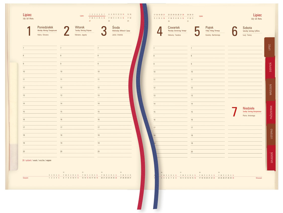 • układ kalendarium: 1 tydzień - 2 strony